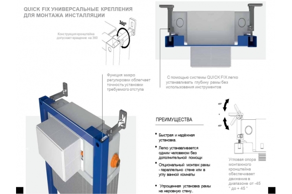 - Дополнительная информация: Глубина установки инсталляции регулируется от 11,2 до 16,4 см